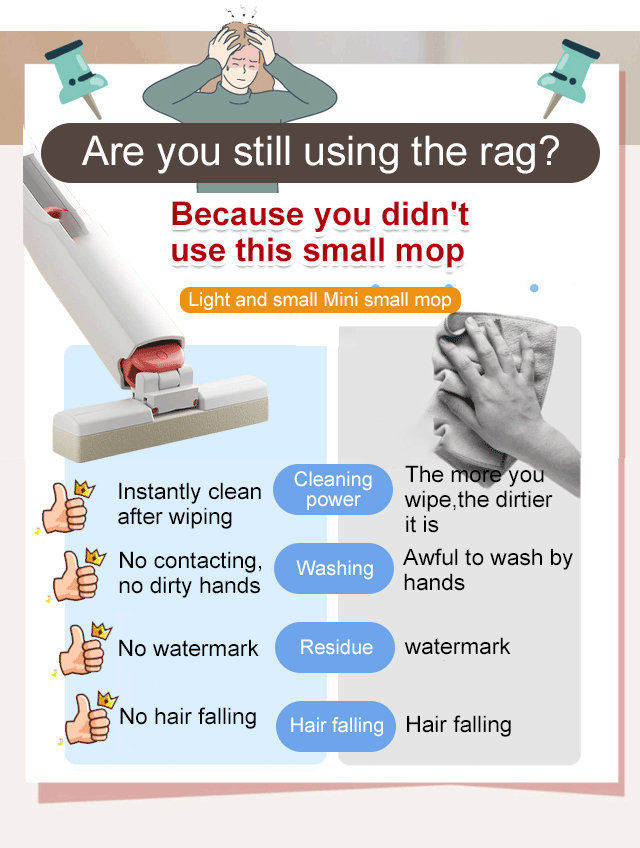 Mini mop with four sides rotation with hand free