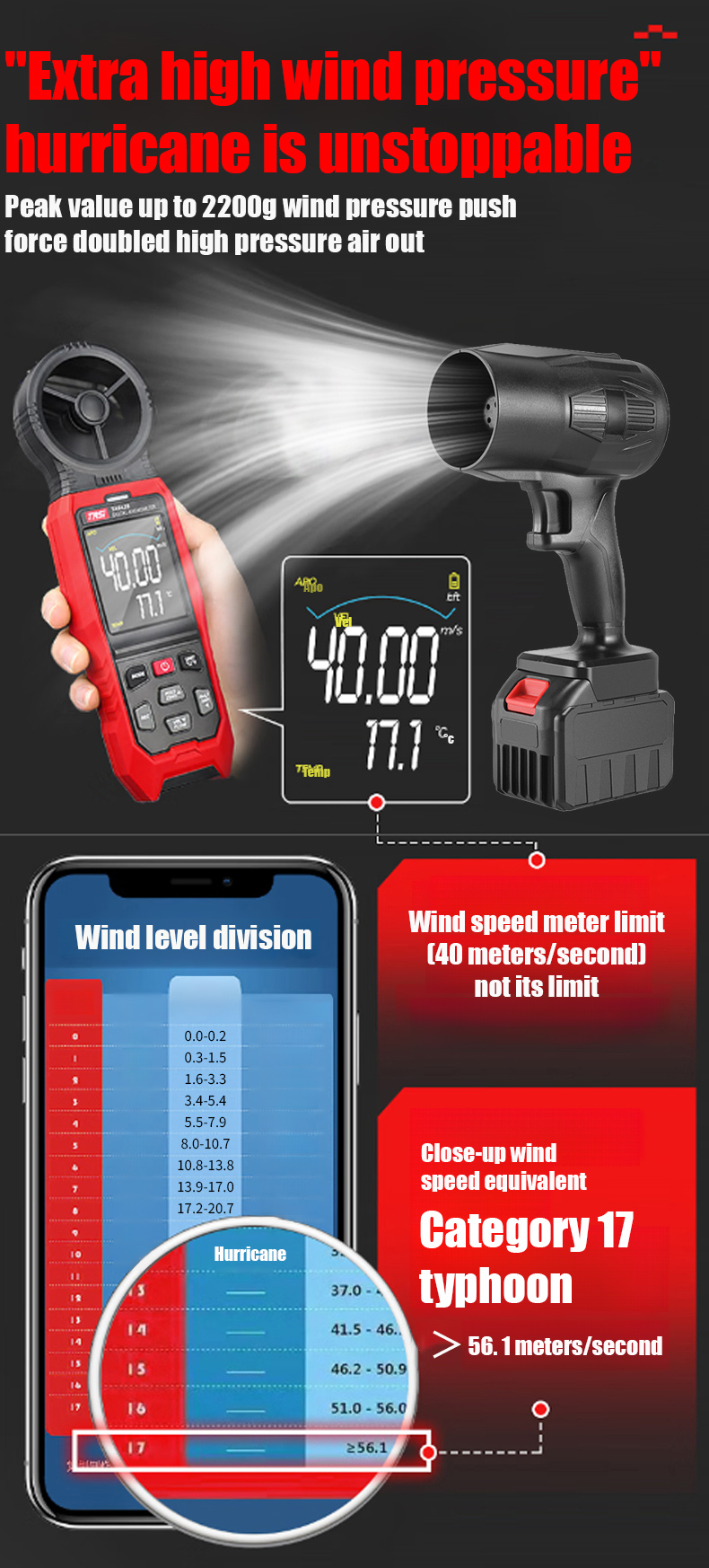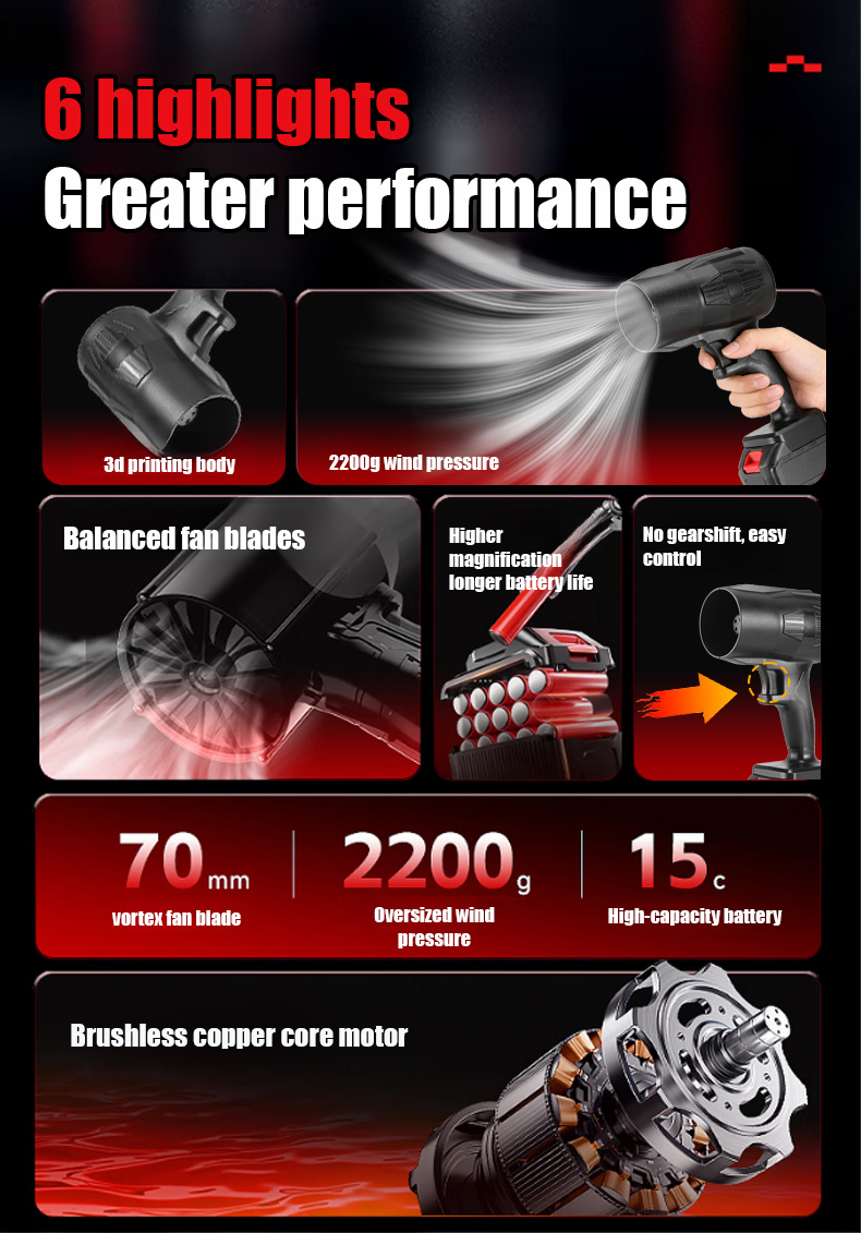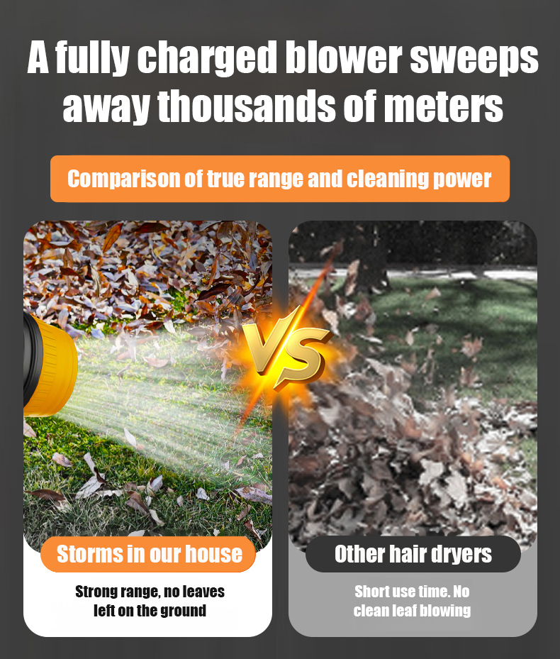 Dual-turbocharged lithium battery blower, with 3 adjustable wind speeds for convenient portability!